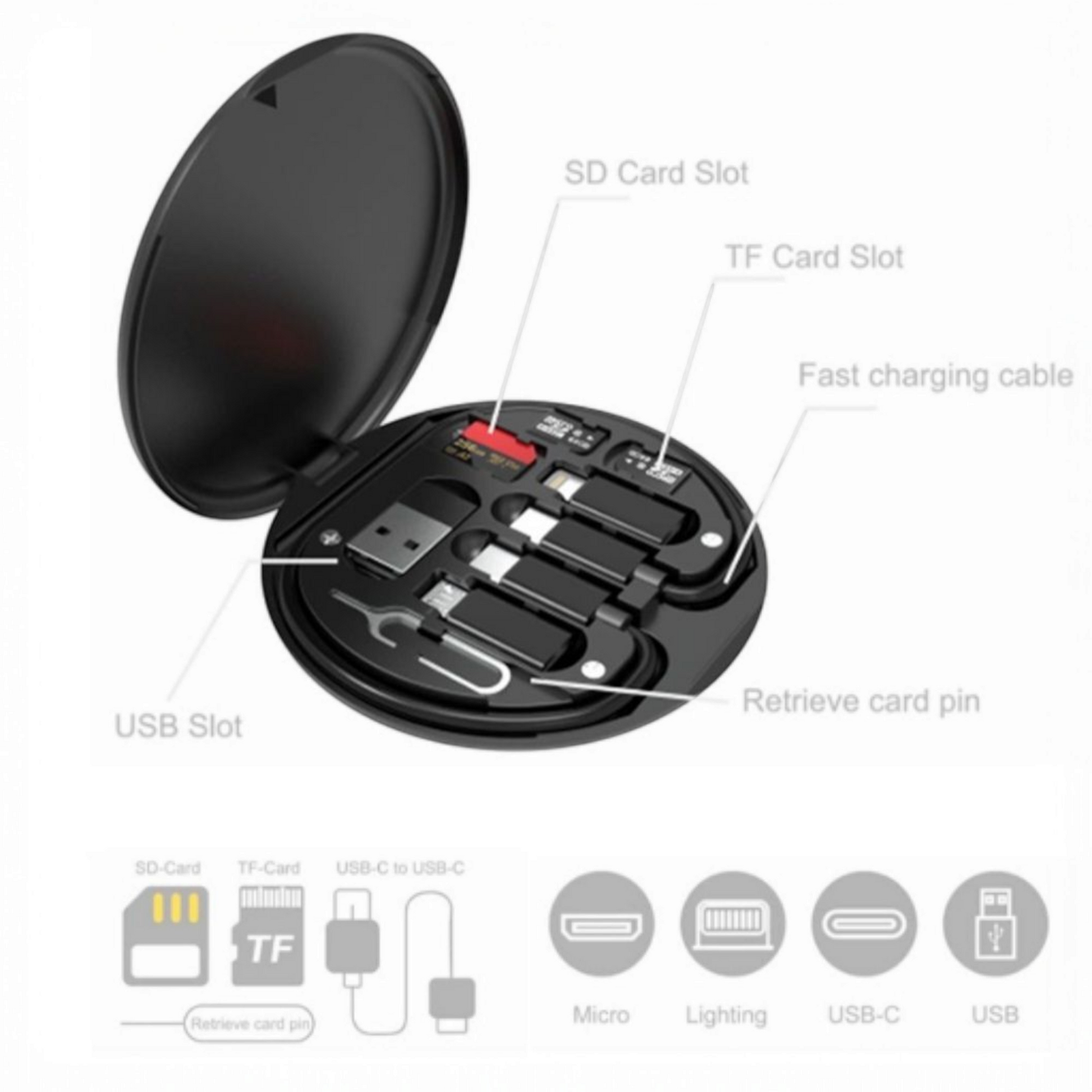 -It is a convenient storage box for various interfaces, SIM cards, and data cables. It also comes with an eject pin. You can store the card after you pick it up to prevent losing the SIM card. The set is perfect for the car, home, work, cafe, outdoors, and other scenes. It is small in size, it can easily fit into pockets, purses, bags, and backpacks, so is easy to carry around.